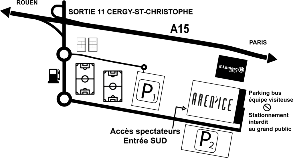 - Depuis Rouen : N14 / A15 - Sortie N°11 Cergy St-Christophe