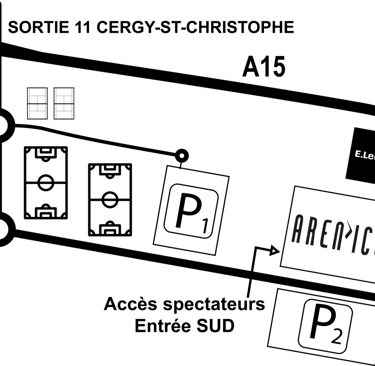 - Parking du Stade Salif Keita (proche Décathlon) et parking événementiel en herbe en face de l'Aren'Ice (activé en événement).
